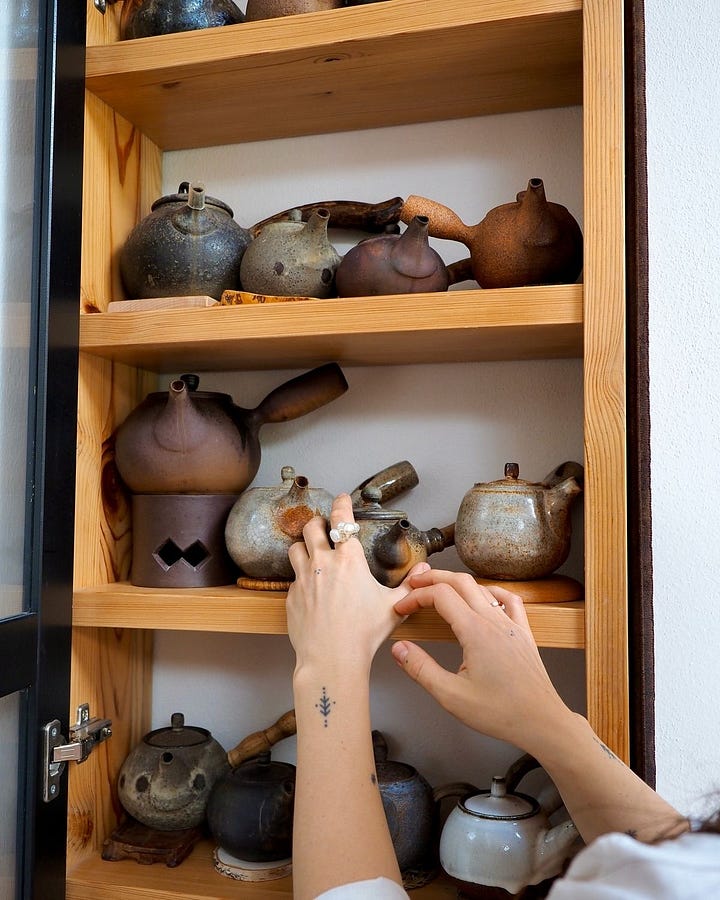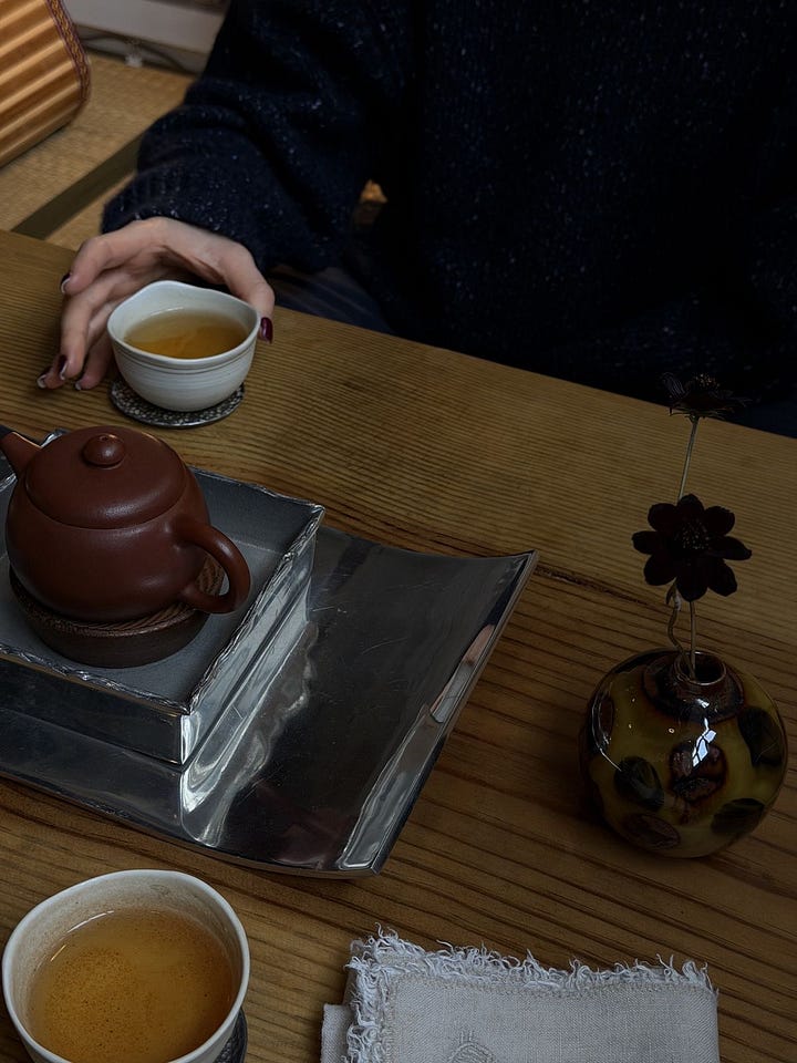 so this essay isn’t just about liking tea. it’s about what i learned behind that counter, how to build a tea tray that feels comforting, the books that shaped the way i think about tea as culture, fragrances that smell like steeped leaves, the kettles and pots i use, and the daily structure tea can give you if you let it.